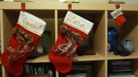 We have tried to include her in the festivities, even going so far as to make the cat her own little stocking to hang next to ours: