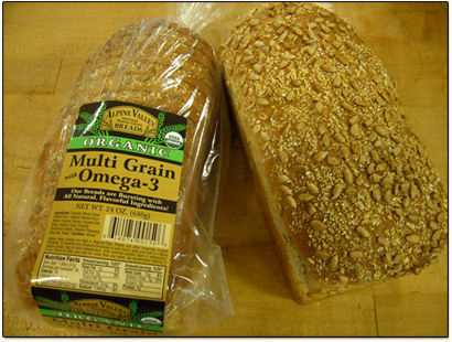 Alpine Valley Multigrain Bread with Omega 3. Yes, it sounds like it tastes like cardboard, but I swear it’s fantastic. I’ve had a tug of war with myself for years about bread. I read the labels and buy the one with more fiber and less sugar, and then wish I hadn’t when I eat it. For a couple of years I made all of my own bread, so I could eat bread that was good for me but also tasted decent. Eventually, I got lazy and went back to buying a series of multigrain breads I couldn’t really get excited about. This bread appeared at my Costco, and I decided to give it a try. It tastes very close to the bread I made at home. It’s a dense sunflower bread with wonderful flavor. It also freezes well. Alpine Valley is carried at Whole Foods in addition to Costco.