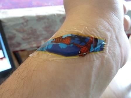 8. This isn’t a step per se, but Spidey and I would like to take a brief moment here to point out that rotary cutters are SHARP! An absent-minded brush against one might result in bleeding and a momentary halt in your project.
