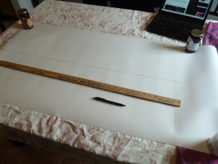 Once you decide where that spot is, lay your piece of styrene on top of it, and trace around it. If your pattern has stripes or other elements you want to keep straight, use your yardstick to help you with alignment.